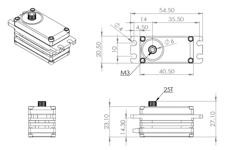 20 mm brushless Servo - Low Profil Größe - für die Taumelscheibe mit hohem Stellmoment