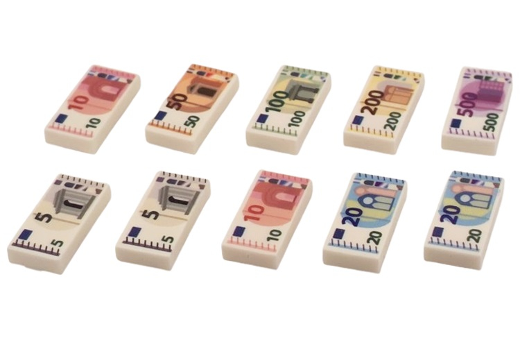 Klemmbausteine Geldscheine 2x1 Fliese weiß bedruckt in der Währung EURO 10Stück