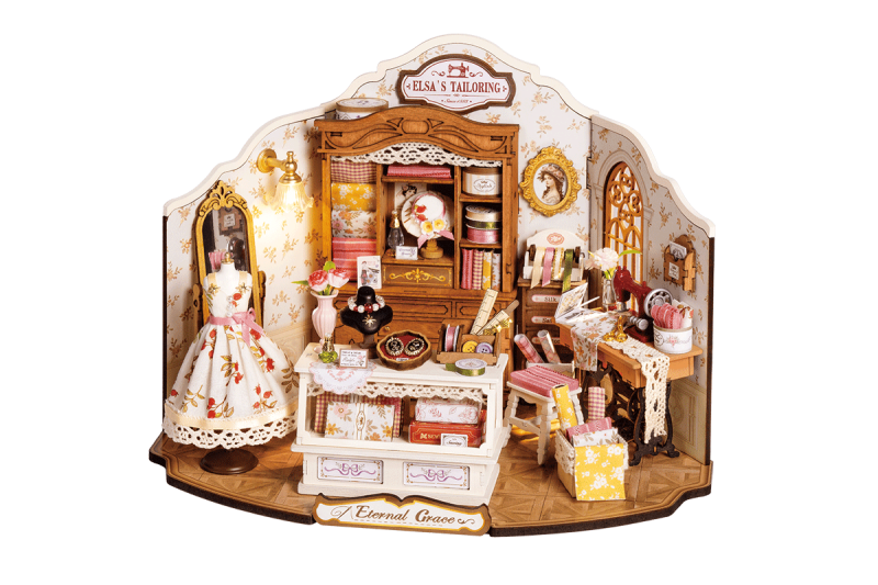 Zarte Stoffe, Blumenmuster und Vintage-Flair füllen dieses Studio bis zum Rand. Bauen Sie Elsas Schneiderei-Miniaturhaus zusammen und erzählen Sie die Geschichte hinter jeder Spule, Skizze und jedem Stoffstreifen aus der viktorianischen Ära.